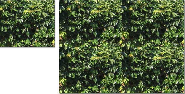 Questo che abbiamo visto, cioè il caso delle piastrelle quadrate o rettangolari, è senz’altro il più semplice, ma non il più comune. Quando l’elemento rappresentato nella texture non è così regolare, sorge un nuovo problema: non c’è una linea orizzontale o verticale su cui tagliare l’immagine, per fare in modo che le ripetizioni non presentino discontinuità.