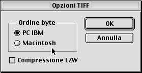 STEP 7: come ordine byte selezionate PC IBM in quanto il Mac legge entrambi gli ordini ma il contrario non sempre avviene in modo corretto: