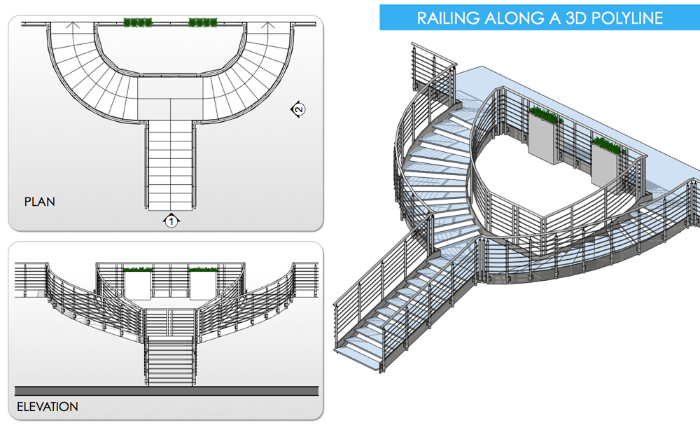 • Ringhiera modificabile come una polilinea 3D• Settaggio tipologia ringhiera• Settaggio posizione e visibilità degli elementi e dei pannelli• Posizione della ringhiera: sinistra, destra e centro• Diverse tipologie di montanti• Editazione completa dei montanti per posizione e visibilità• Editazione completa dei montanti per visibilità• Posizionamento del tubolare/pannello: sinistra, destra e centro• Modifica attraverso "stiramento" degli elementi