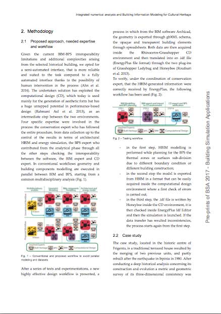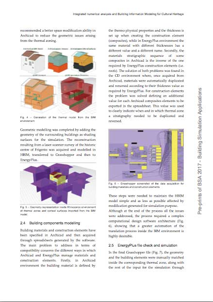 L’uso della simulazione numerica applicata agli edifici storici apre scenari molti interessanti ed argomento attuali di molti studi nel settore dell’HBIM (Heritage Building Information Modeling). La complessità di questa operazione è dovuta a molti fattori: la geometria complessa coinvolta, la non standardizzazione degli elementi costruttivi, il comportamento inerziale delle masse murali, l’importanza della veicolazione dell’umidità. Questi sono i problemi dovuti alla complessità di gestione dei flussi di lavoro di progettazione in un progetto di conservazione di edifici storici.